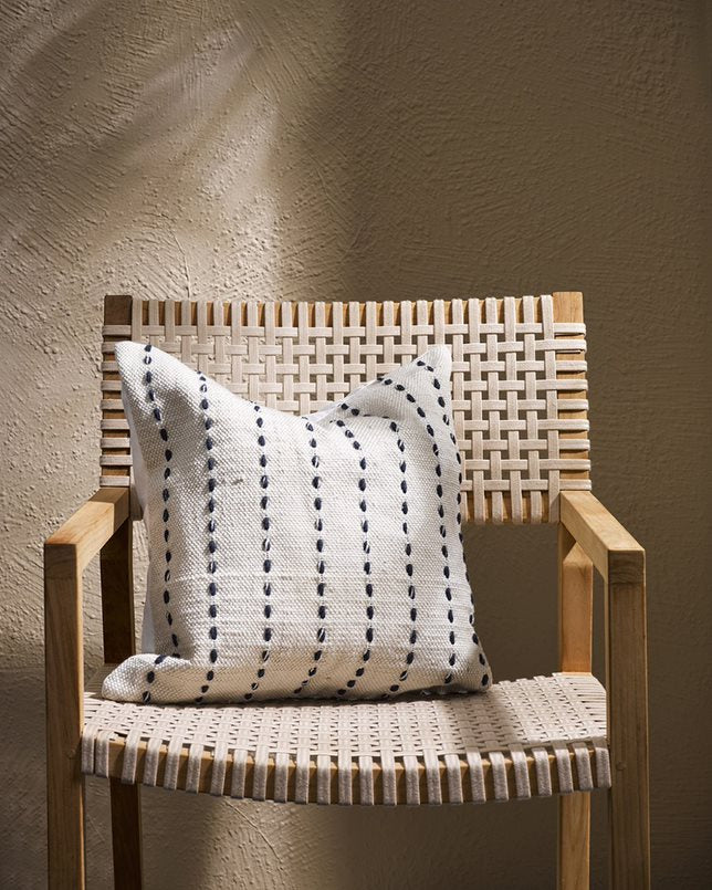 Create a tranquil, coastal feel with the fresh blue and white colourway of our Cooper cushion. Handwoven from 100% PET yarn - a soft and supple fibre produced by recycling plastic bottles, these versatile and durable cushions are the perfect combination for easy summer living.